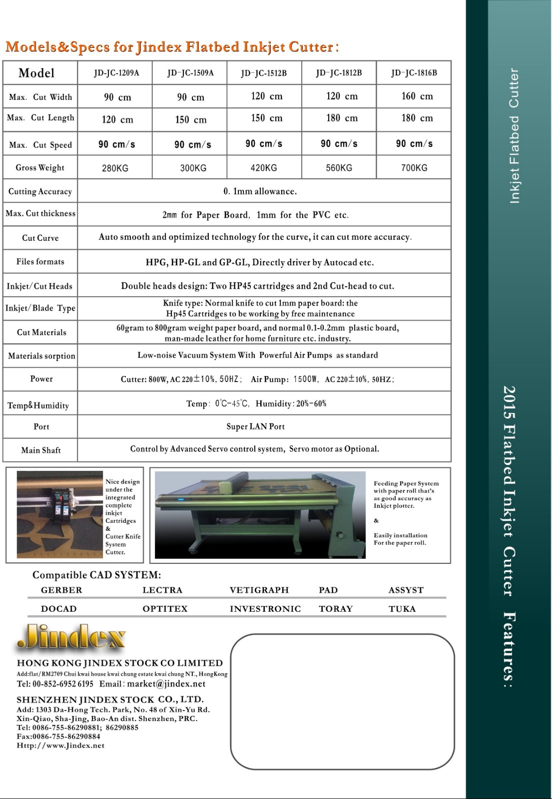 Jindex Automatic Paper Feeding Flatbed Inkjet Cutter